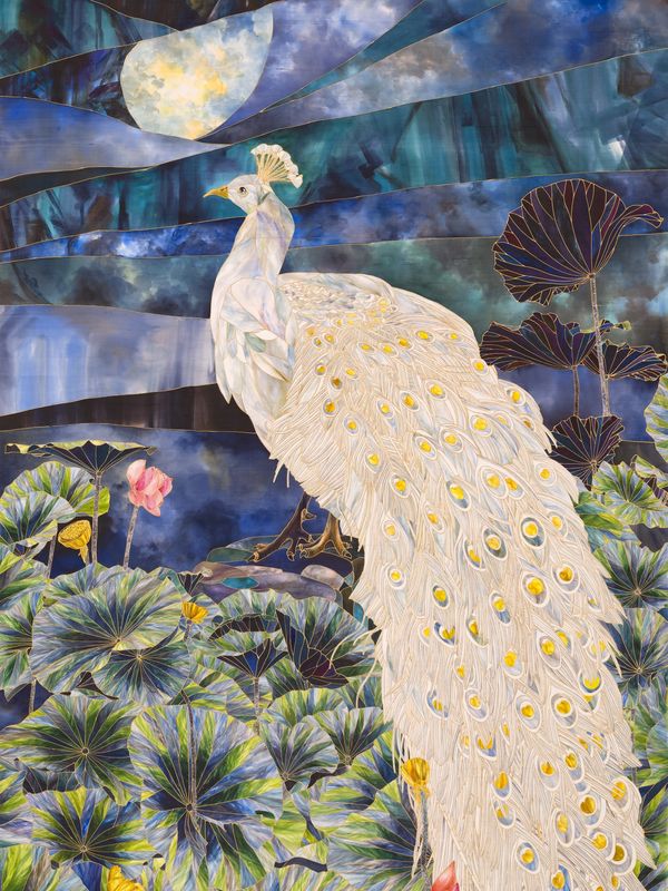 Through multiple color applications, Hwang Ju-hyun depicts landscapes adorned with flowers and birds in warm hues. Her inspiration to portray nature stems from its constant ability to provide comfort and stability. Common motifs in her work include lotus leaves and peacocks. Historically, these symbols have represented comfort and stability in chaotic societies. The 'flexible yet resilient vitality' of the lotus and the 'pure immortal soul' of the peacock's feathers symbolize the unchanging elements and the healing power of love in modern, turbulent times.